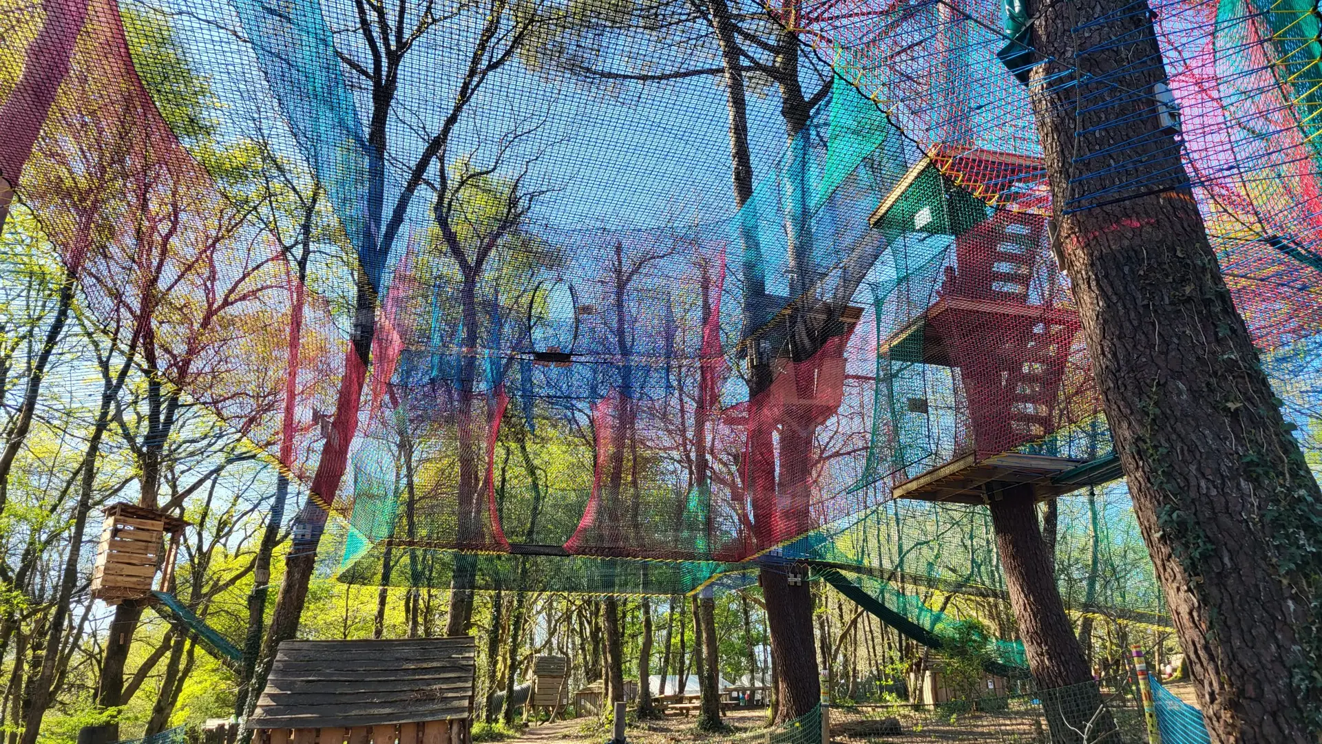 Parc avec 70 activités incluant tyroliennes, trampolines et toboggans pour tous les âges et tous les appétits.